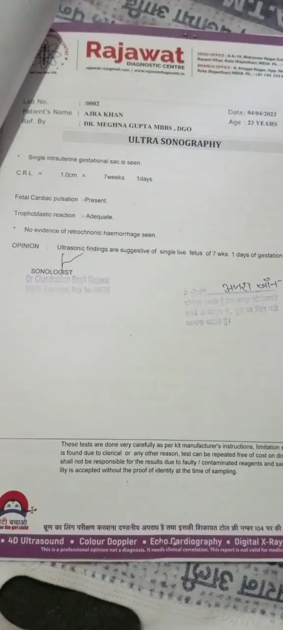 • Hello sisters please meri ultrasound report dekhkar bataiye ki sab Kuch hai .... our meri pregnancy ko kitne din ho gay me bahut confused Hu ....mere hisaab se 7th month abhi start hua hai doctor ne Bola hai ki 7 month complete hone wala hai ..... please help me
