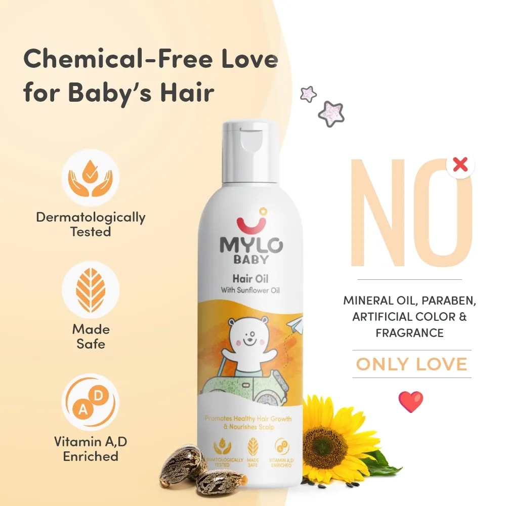 Babies have delicate skin on the scalp, and it can easily get dry and itchy. So, their hair & scalp deserve special care. Mylo Baby Hair Oil has been expertly crafted from a blend of 7 nourishing oils to strengthen baby’s hair, enhance scalp health, prevent itching, and stimulate natural hair growth. It’s time to say goodbye to itchy scalp and hello to healthier, happier hair.