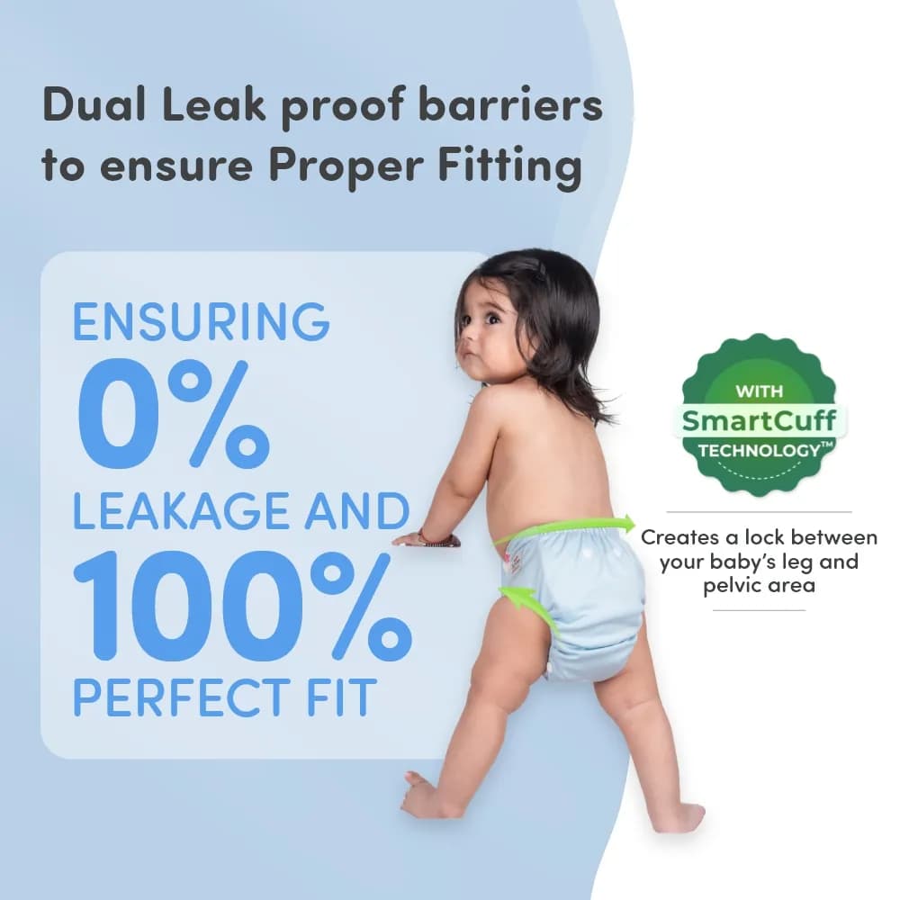 Mylo Essentials Cloth Diapers hold the goodness of cloth and provide a rash-free diapering experience for your little one. These are soft, comfortable, and are adjustable from the waist. The insert pad of the diapers is OEKO-TEX certified, which means all fabric that touches your precious little one’s skin is certified-free free from harmful chemicals. These are suitable for babies 3 months to 3 years of age (5-17 kgs). These reusable and washable diapers are made of a microfleece inner layer & the insert pad is made from OEKO –TEX certified fabric.
