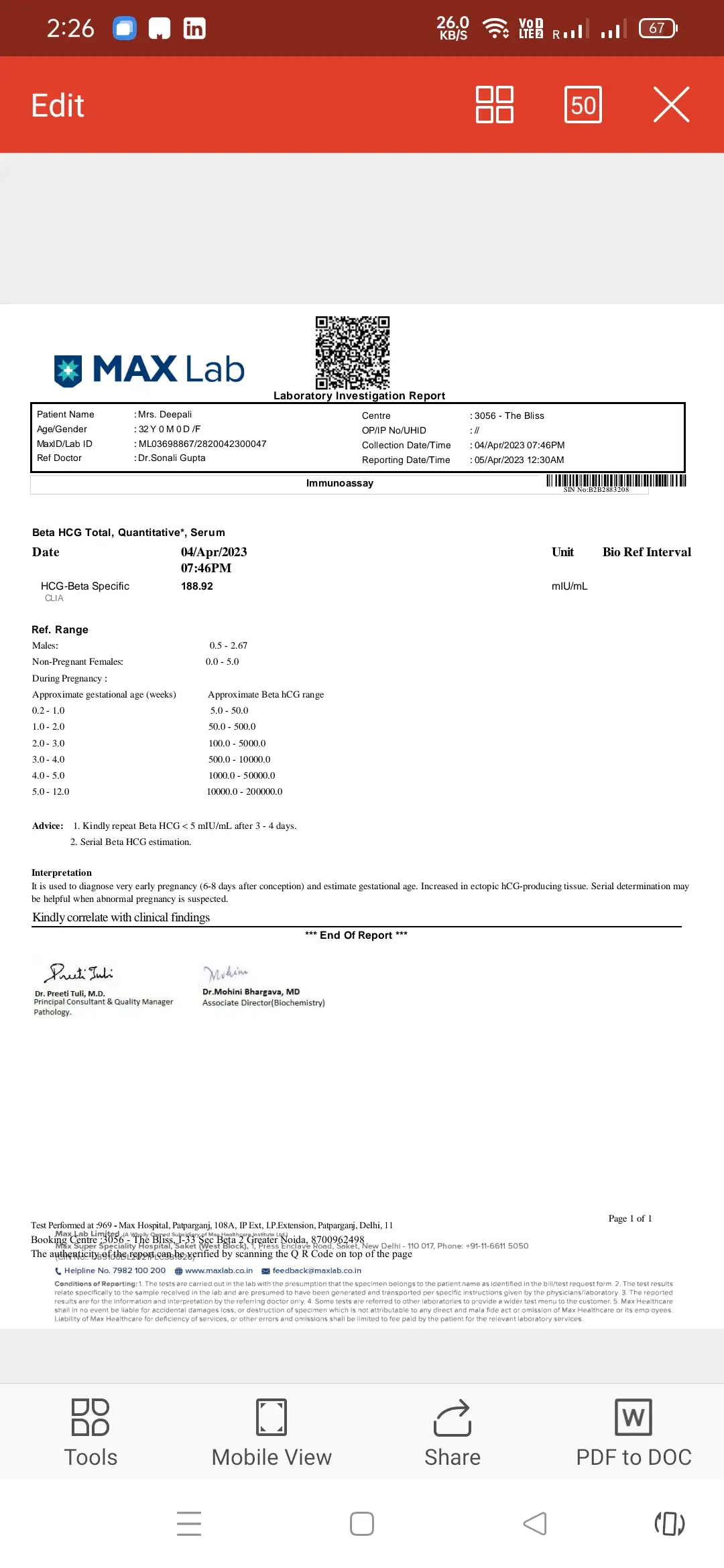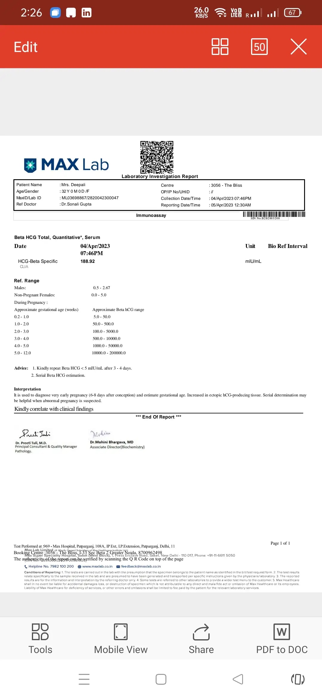 • My beta hcg report please see and tell what's in it any experienced moms arrow