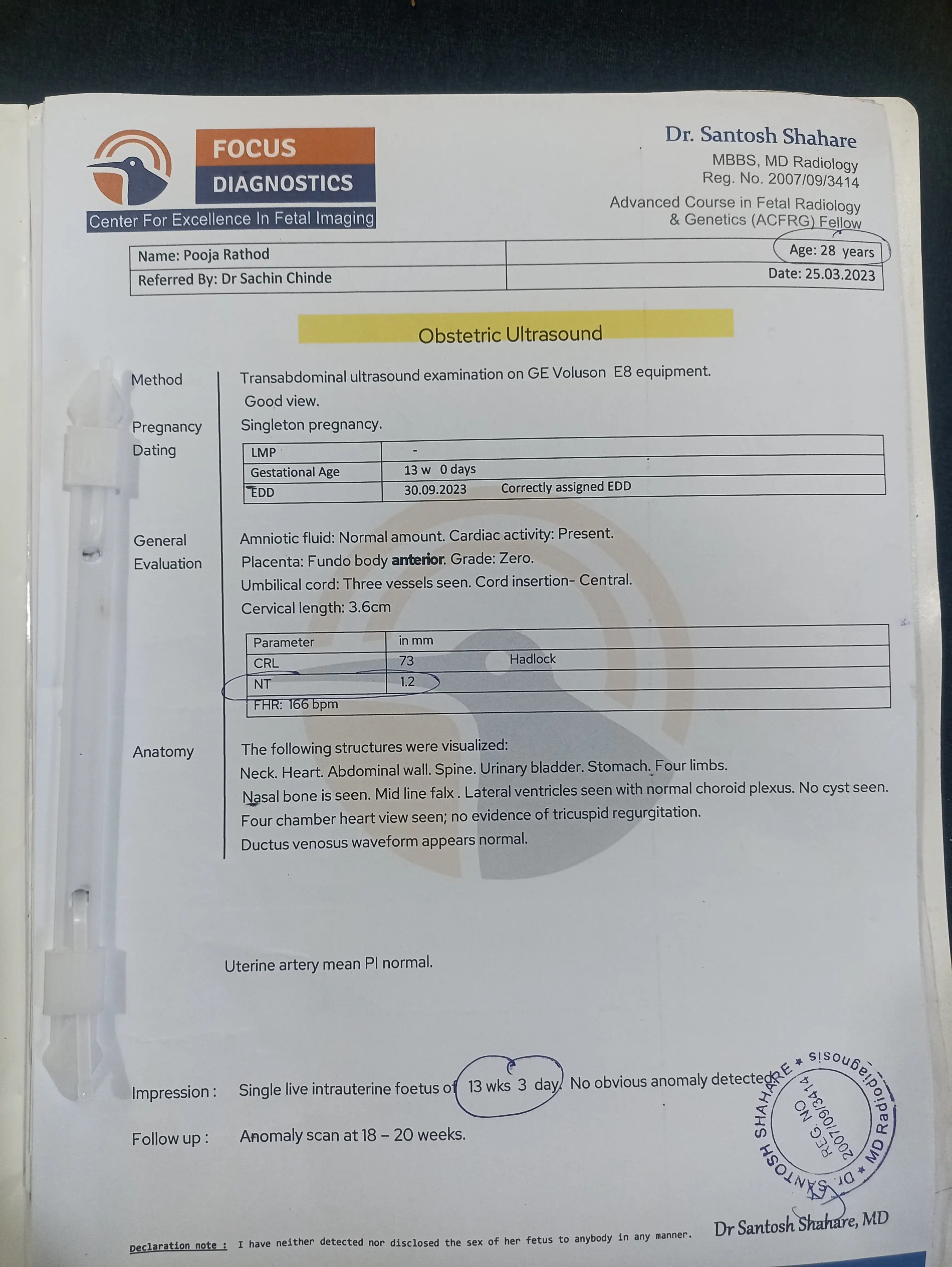 • This is my NT scan report.. Sub thik he na plz guid me arrow